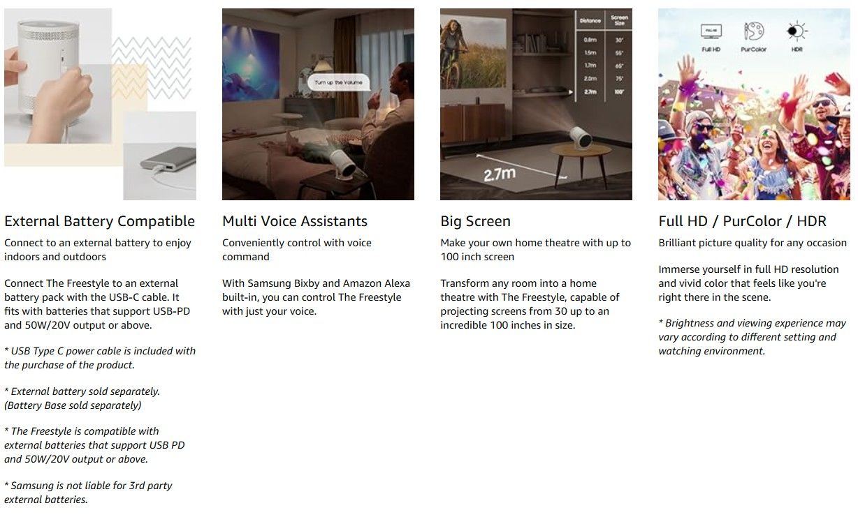 Samsung 30-100 Inch Samsung, LSP3C, Full HD, All Round Design, Instant Setup, Premium 360 Sound, Smart Experience, The Freestyle 2nd Gen Projector, SP-LFF3CLAXXZN (2023 - UAE Version)